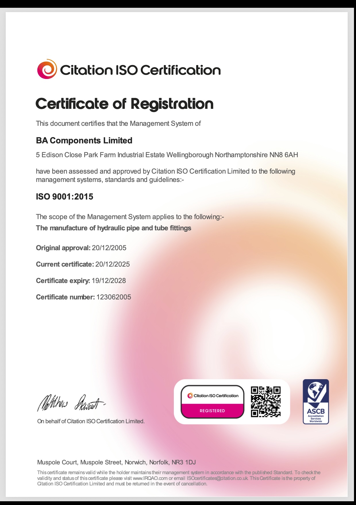 ContactB.A. Components Ltd Tel: +44 (0) 1933 403878 |